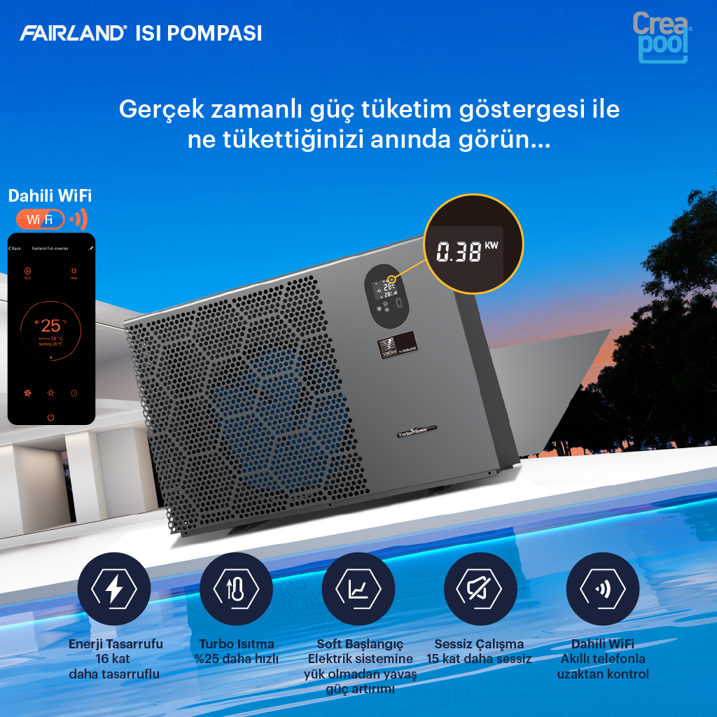 Creapool’un önerdiği Fairland Isı Pompası hava kaynaklı ısı pompası sınıfına girmektedir. Üstelik sahip olduğu yenilikçi ve üstün teknoloji sayesinde rakiplerine göre kullanım avantajı sağlamaktadır. Hava kaynaklı ısı pompaları havuz suyunu ısıtırken ortamdaki havadan faydalanır. Ortamda bulunan havadaki enerjiyi alarak 4-5 kat büyüklükte bir enerji olarak havuza iletir. Temel çalışma prensibi aynı olan ısı pompaları arasında tercih yapılırken aşağıda belirtilen hususlara dikkat edilmesi gerekmektedir.